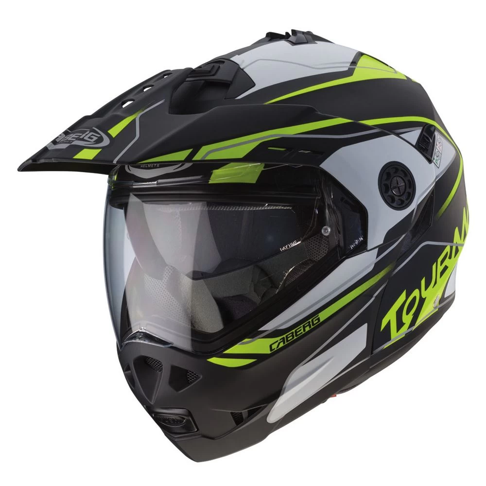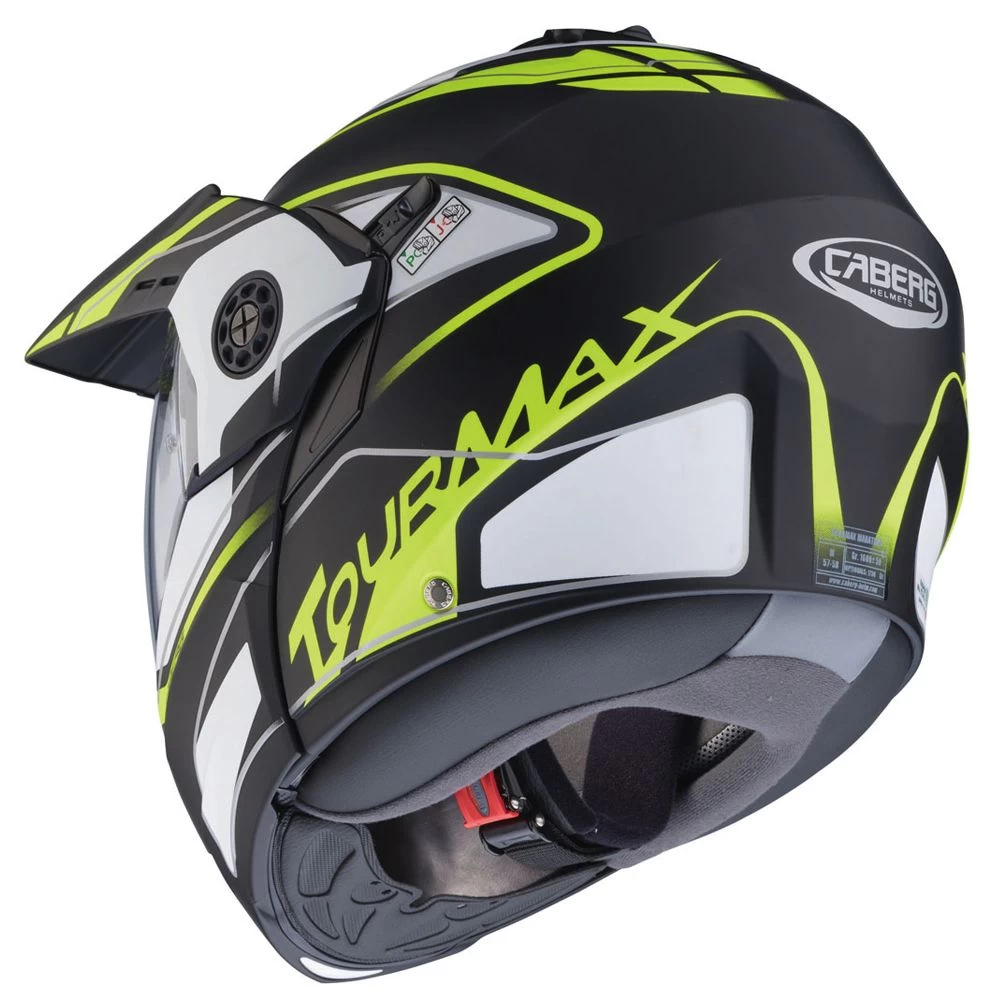 Tourmax is the first flip up Adventure on the market conceived for all the Eunduro and Maxi Enduro motorcycles owners. As result of the long experience gained by Caberg, the first Italian company to produce flip up helmets, the new TOURMAX 100% Made in Italy is equipped with a peak that automatically moves close to the visor when opening the chin guard in order to minimize air resistance.