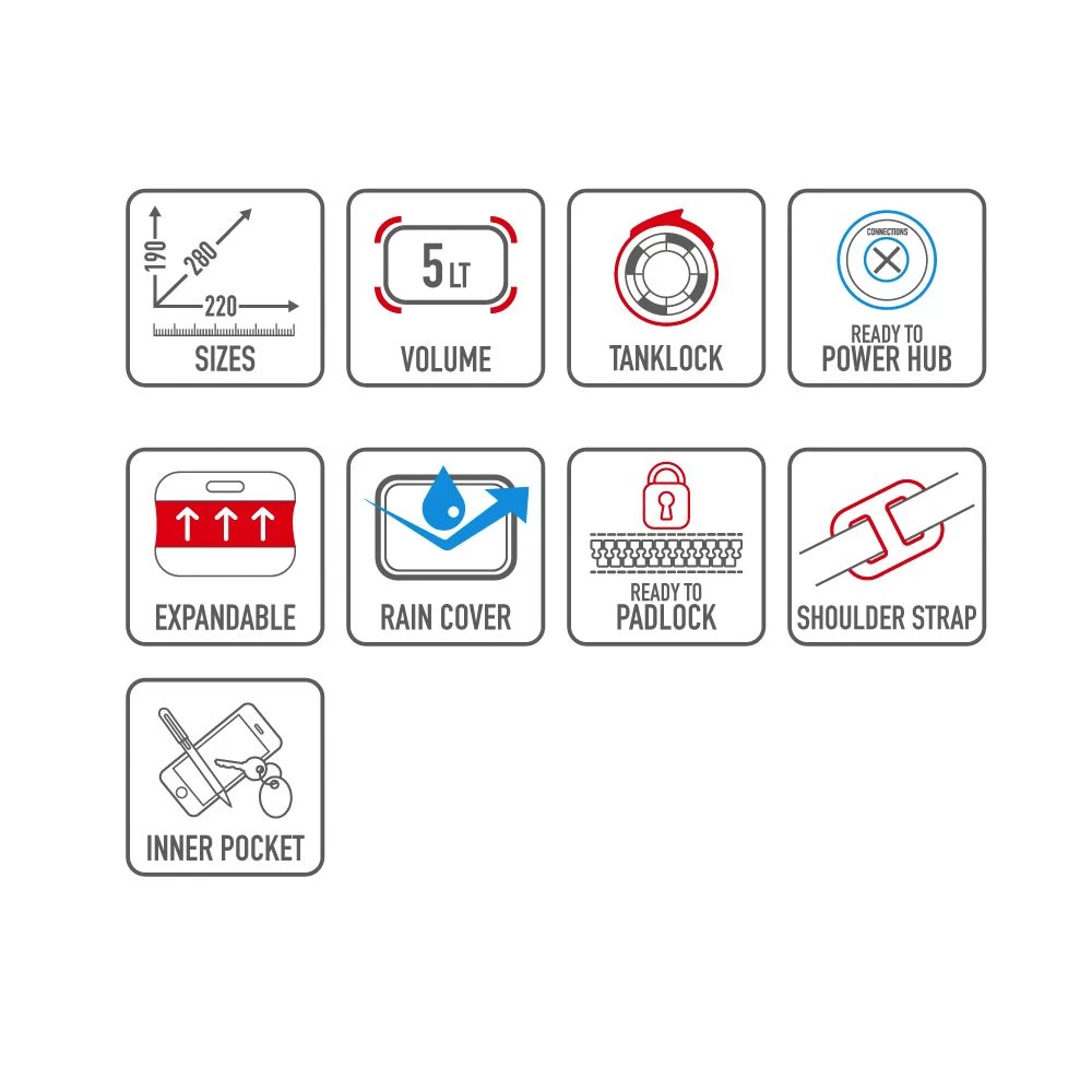 TANKLOCK tank bag, thermoformed, expandable, with a 5 ltr capacity.