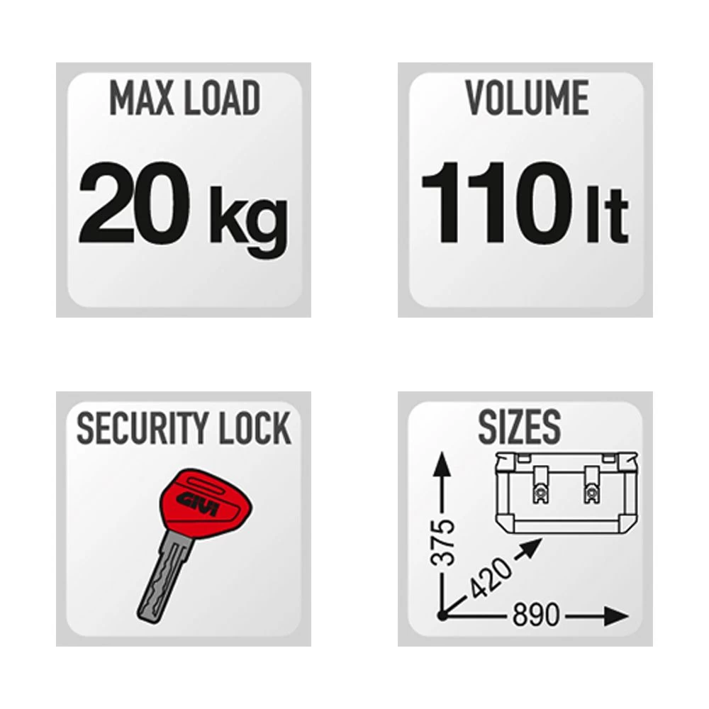 Trekker Outback case for ATV bike, 110 ltr volume, with “fixed system” fitting structure, to be fixed directly to the rear rack of the ATV, sold separately.