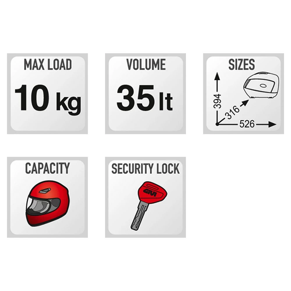 The V35NT side cases feature a MONOKEY® SIDE system with 4 anchor points, compatible with the PLX and PLXR frames.