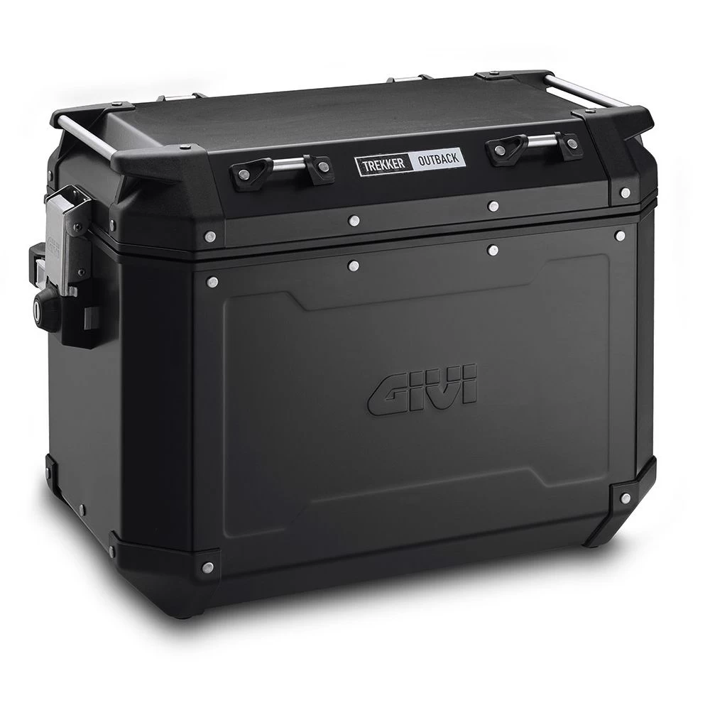 Trekker Outback side-case, with aluminium structure and inner profiled aluminium reinforcements. Available in two different sizes: 37 ltr and 48 ltr. Equipped with the MONOKEY® CAM-SIDE fitting system in die-cast aluminium and inserts in reinforced technopolymer.