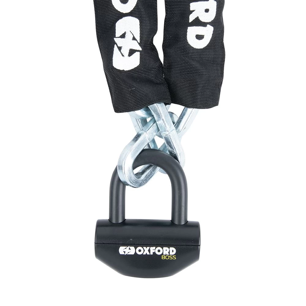 The Oxford Boss Chain Lock has undergone rigorous independent testing and has been awarded Sold Secure Motorcycle GOLD, is SBSC certified and also approved by FG (lock only). Insurance discounts are available in the UK when you use this lock.