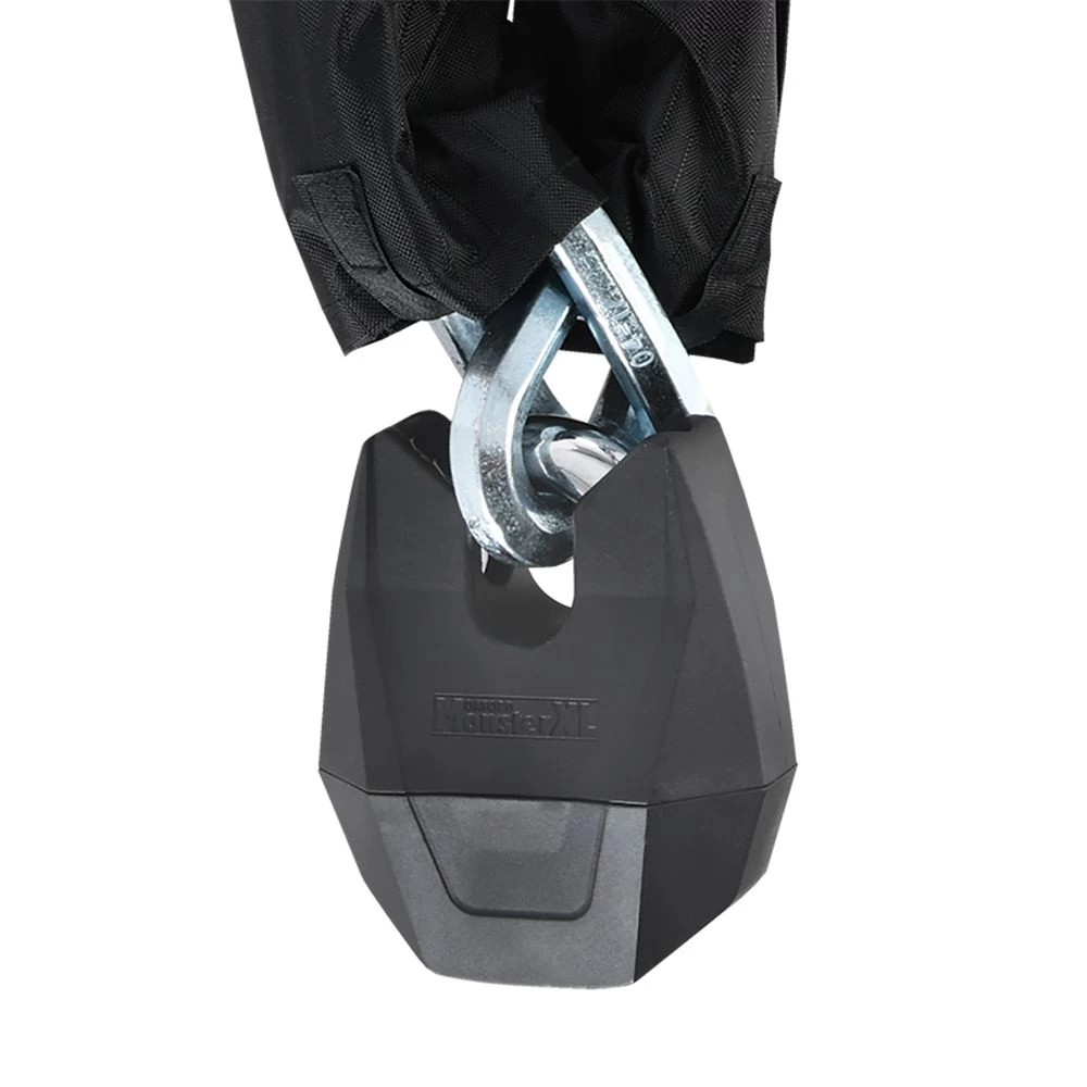 The ultra strong padlock has boron steel armour casing and features a double locking mechanism and a massive 16mm shackle. The padlock comes with three keys for which there is a key replacement service. When you buy your Monster XL, simply note down the number which comes attached to the keys on a metal tag. Keep this in a safe place then, in the event that you are unfortunate enough to lose all your keys, it will be possible to get a new key made up for you.