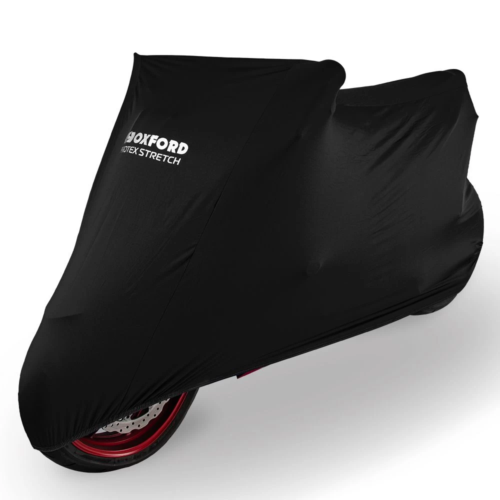 The Oxford Protex Stretch is a premium stretch-fit indoor cover. It offers protection against sun, dust and condensation. The 4-way stretch material in a seamless construction provides huge flexibility for all different shapes and sizes of bike, whilst still ensuring a figure-hugging fit.