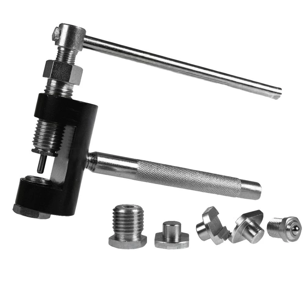 An all in one chain tool which makes changing your chain a simple and less expensive task. Designed to break chains, press fit connecting link plates, and rivet pin heads.