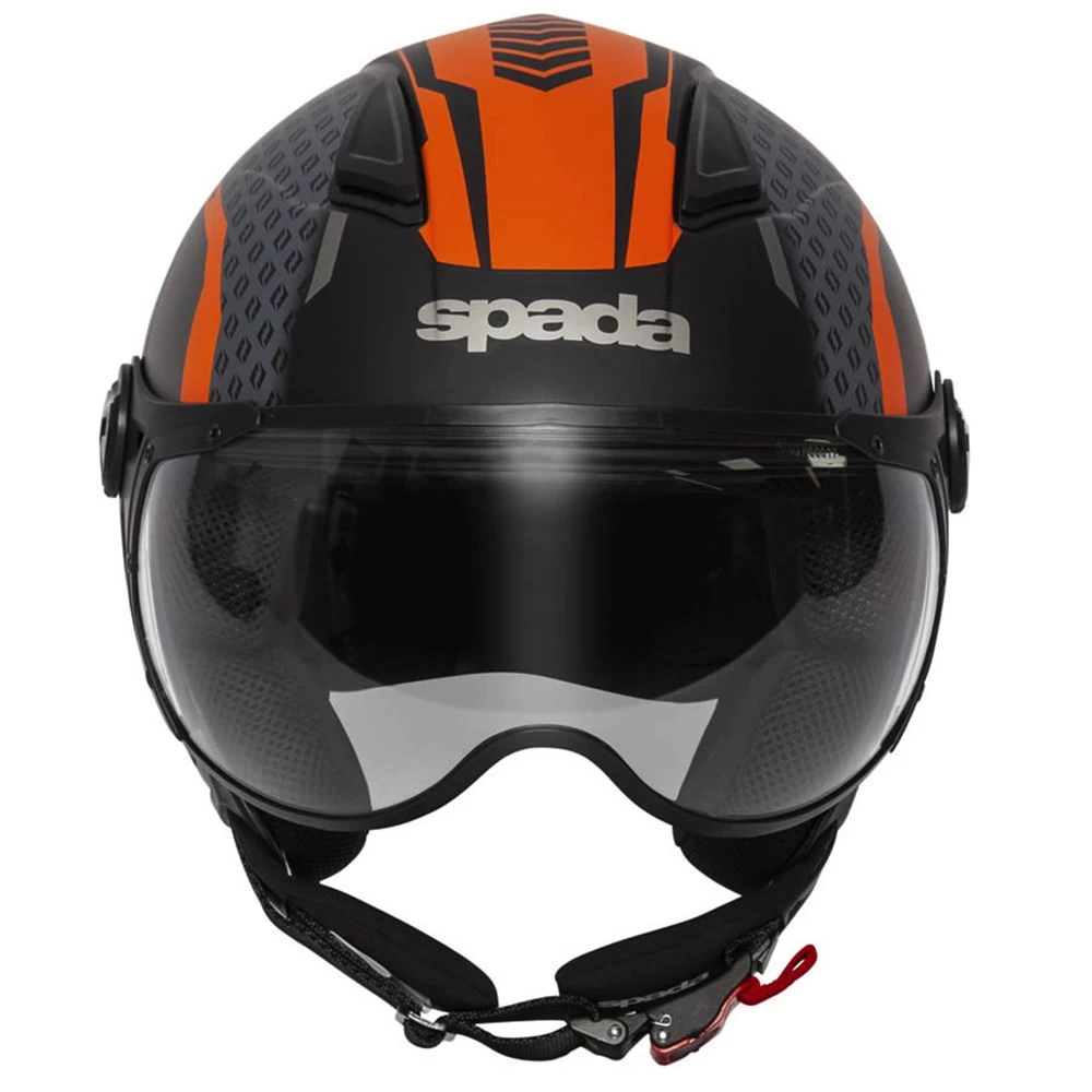 The Spada Hellion is an open face helmet with a compact streamlined shell, quick release fastening with a Shaped anti-scratch visor.
