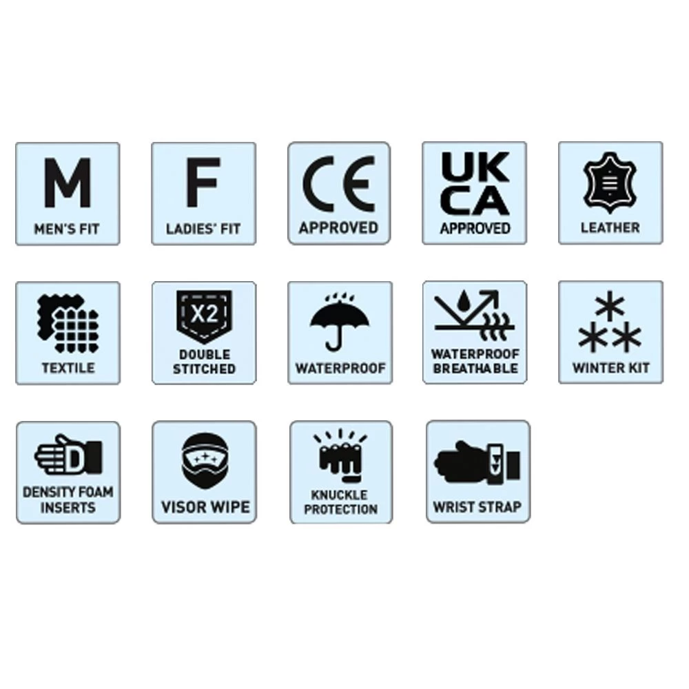 An ideal winter lightweight waterproof glove that offers you the best of both worlds for comfort and safety. Constructed from a combination of goatskin leather and softshell textile material. The softshell outer material gives a light, comfortable feeling, while the goatskin leather provides incredible abrasion-resistant properties, keeping your hands safe while you ride. The goatskin leather is mulit-layered at the palm, helping to provide an additional layer of abrasion resistance. Further protection comes in the form of a hidden Thermoplastic Polyurethane mould on the knuckles.  The Oslo winter gloves feature a breathable waterproof membrane, helping keep your hands protected in wet weather. The Oslo gloves factor in a breathable layer to allow water vapour to escape keeping your hand moisture free. These winter motorcycle gloves are also windproof and feature a thermal lining, helping to reduce the effects of wind chill when riding and provide a layer of insulation to help keep your hands warm on the coldest of winter mornings or evenings.  A visor wiper can be found on the index finger, allowing you to quickly and efficiently wipe away any rainwater from your visor. Â